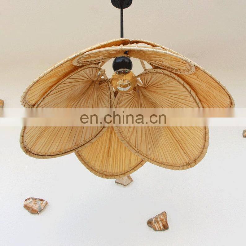 Unique Natural Palm Chandelier Lampshade Bamboo Hanging Lamp Natural Woven Boho Rustic Lamp