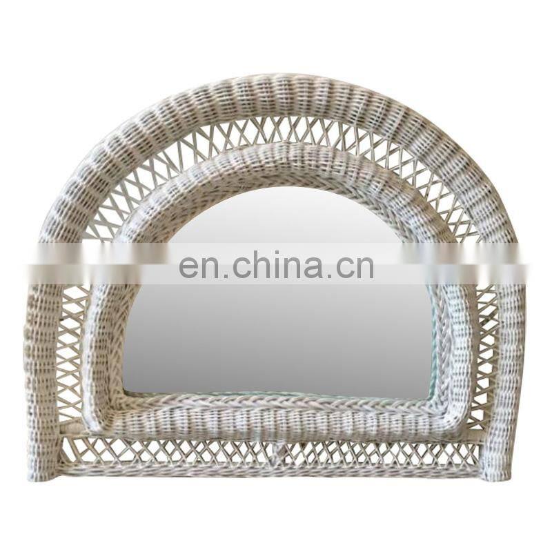 Handmade Vintage Rattan Vanity Mirror Natural Wicker Weave Design Studio Soft Furnishing Wholesale Made in Vietnam