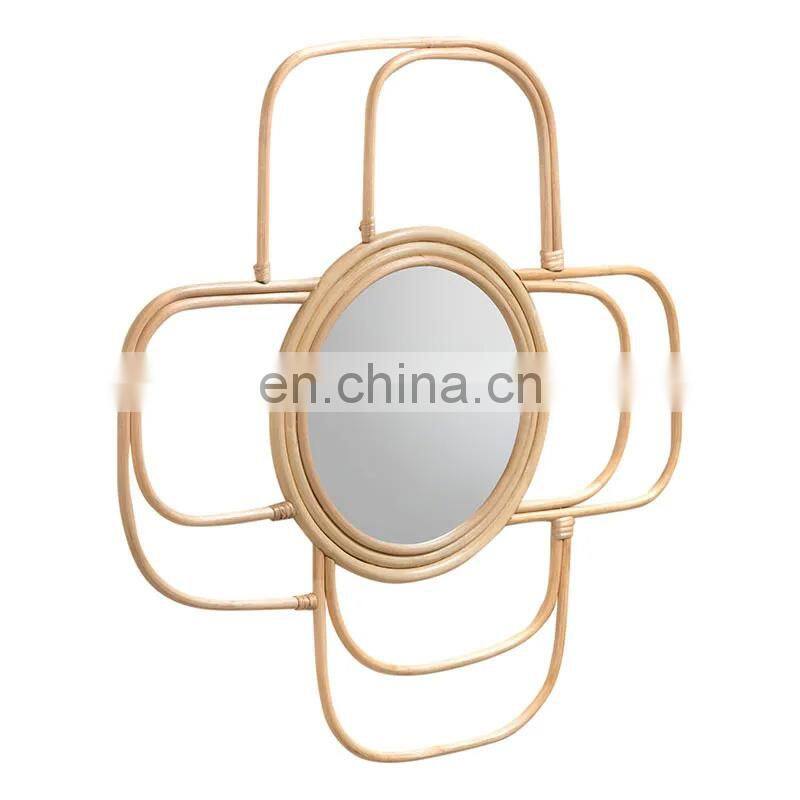 Hot Sale Bohemian Style Rattan Flower Mirror for Wall Home Decorative Wall Art for Living Room Vietnam Manufacturer