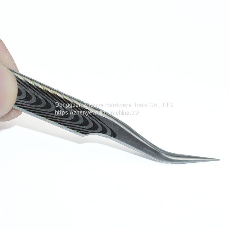 Black plastic tweezers clean carbon fiber tweezers pointed flat elbow round 93305