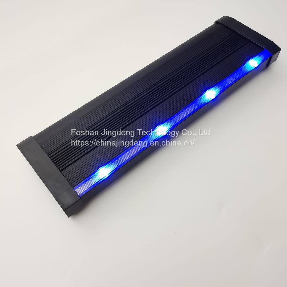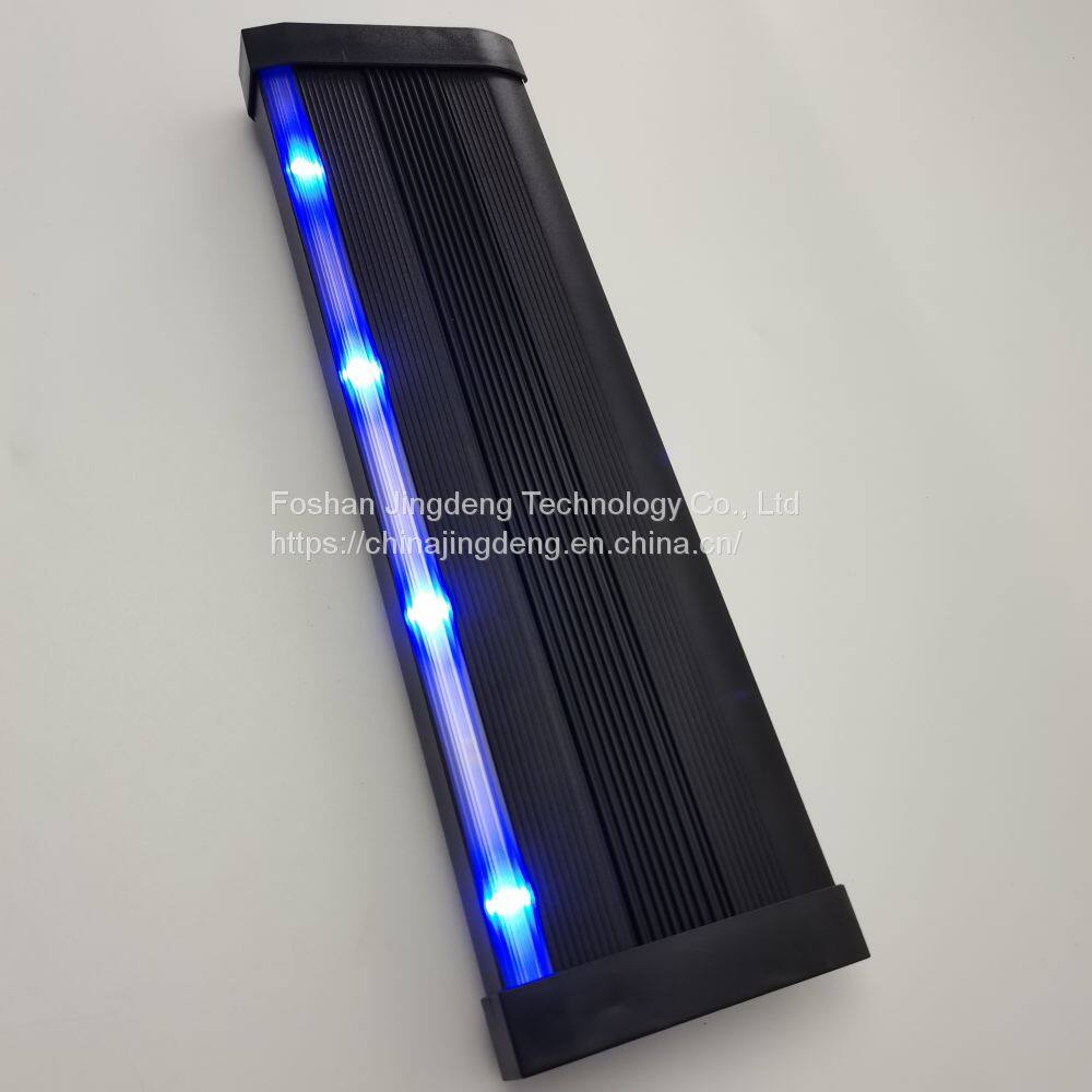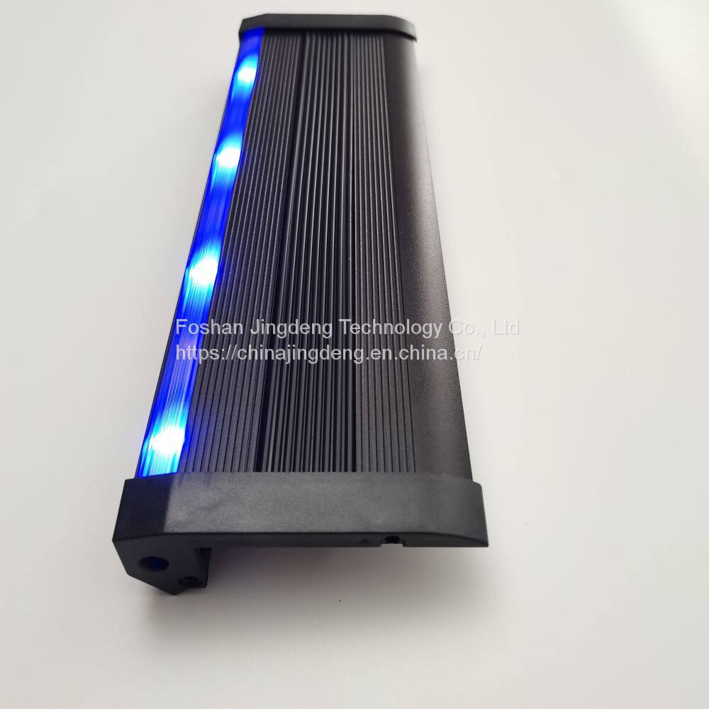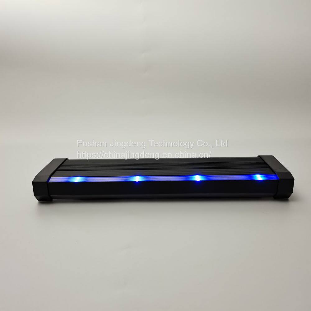 The blue spot light LED stair light on the wooden floor steps of the lecture hall is a stair light independently developed by China Foshan Jingdeng Technology Co., Ltd. and protected by a Chinese patent. The aluminum lamp body is sturdy and durable in structure, flame-proof and safe, and the surface is treated with electrostatic coating.