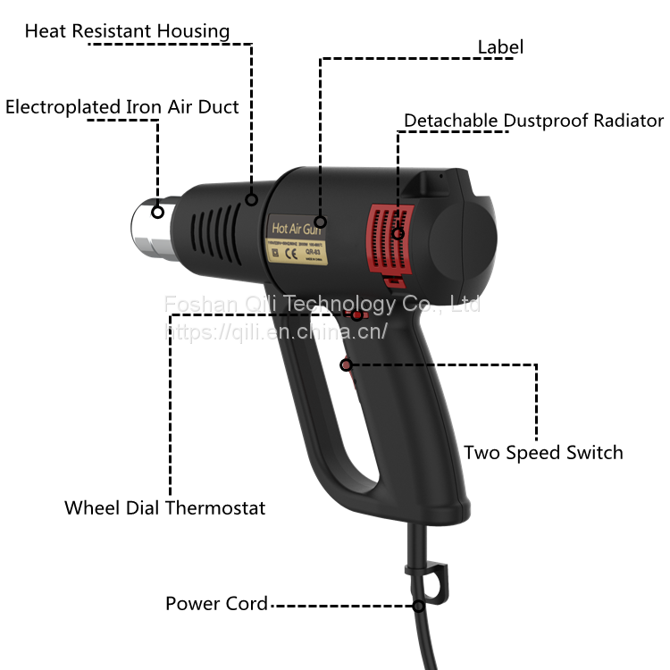 Home > Products > heat gun > Qr 83b Qili Factory Price Hot Air Gun 2200W 220V/240V Heat Gun Shrink Wrap Shrink Heater Gun