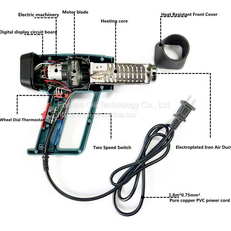 Qr 83c1 Qili Strong Power Heat Shrink Gun 2 Speed Wind Control Hot Air Gun Air Blower for Craft