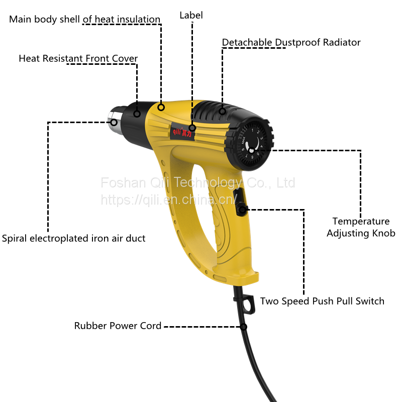Qili Electric Tool Hot Sell Electric Heat Gun 220V-240V 50/60 Hz Craft Heat Gun Yellow Gun