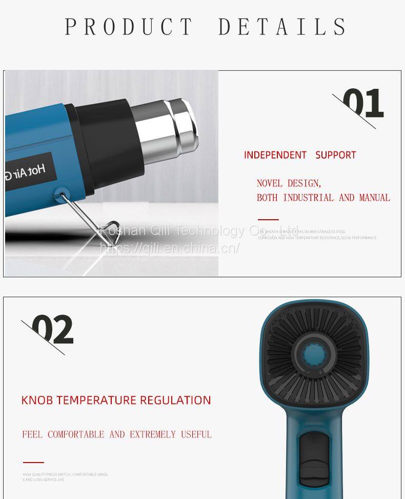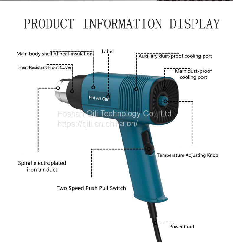 Qili 323 Chinese Supplier Adjustable Temperature by Rear Button Electric Heat Gun