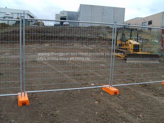 The company has large injection yard equipment and can produce plastic bases by itself. The plastic base is filled with concrete and can work directly. It can also be made into heavy-duty, corrosion-resistant steel. The temporary fence panel can be inserted into the base to stand.