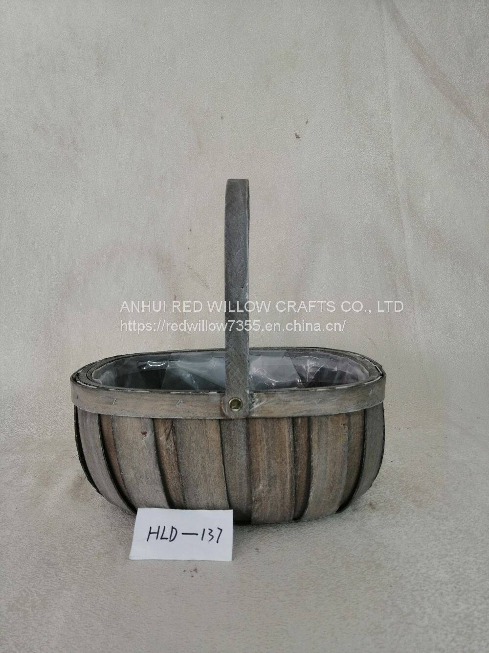 Wholesale Wooden Chip Storage Flower Basket With Handle