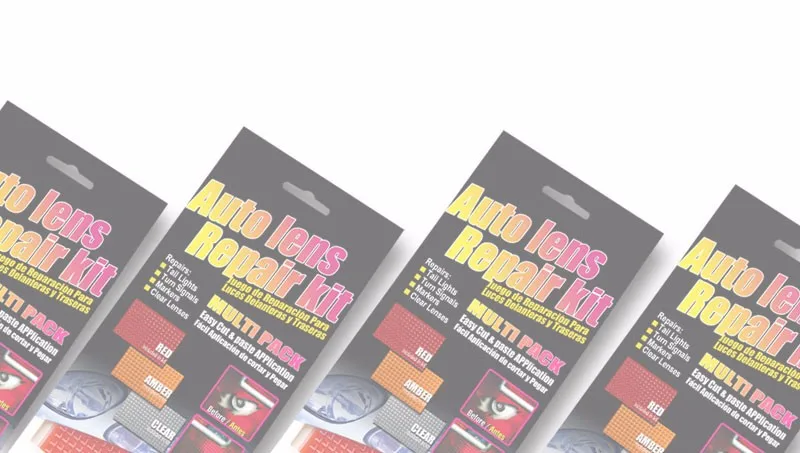 New all 3 colors in one affordable Multi-Pack Lens Repair Kit! QUICK LENS will fix a typical broken taillight lens in place, without removing the housing. The repair panel has a pre-formed grid pattern that closely matches the color and reflective qualities of the lens. Quick Lens mounts quickly and easily on flat or curved surfaces with a special adhesive gasket forming a weather proof seal. INSTRUCTIONS QUICK LENS REPAIR 1. Remove all loose and broken pieces around damaged area. Clean lens around area thoroughly with dry cloth or paper towel. 2. Hold panel over damaged area to determine size of lens repair panel. Position the pane allowing 1/2 inch over lap on all sides of damage. if size selected needs to be smaller, trim along the inner grid lines. 3. Peel backing from panel and center over area to be repaired. Press the panel to the lens and run your fingers around the edges to insure a good bond.
