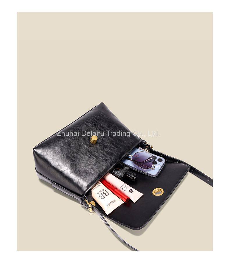 Stylish Casual Crossbody Bag High Quality Oil Wax Leather Bag for Lady