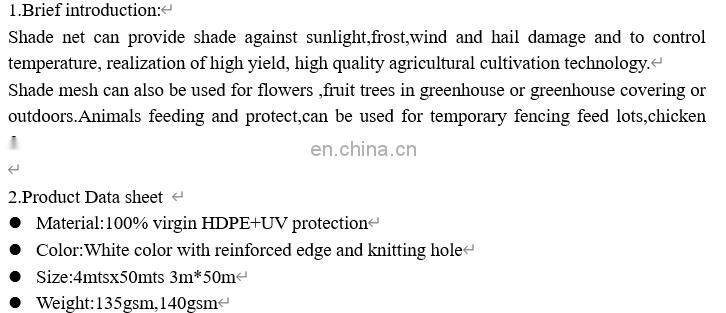 100% New HDPE White Color Shade Net Sun Shading Net UV Stabilized Garden Shade Net