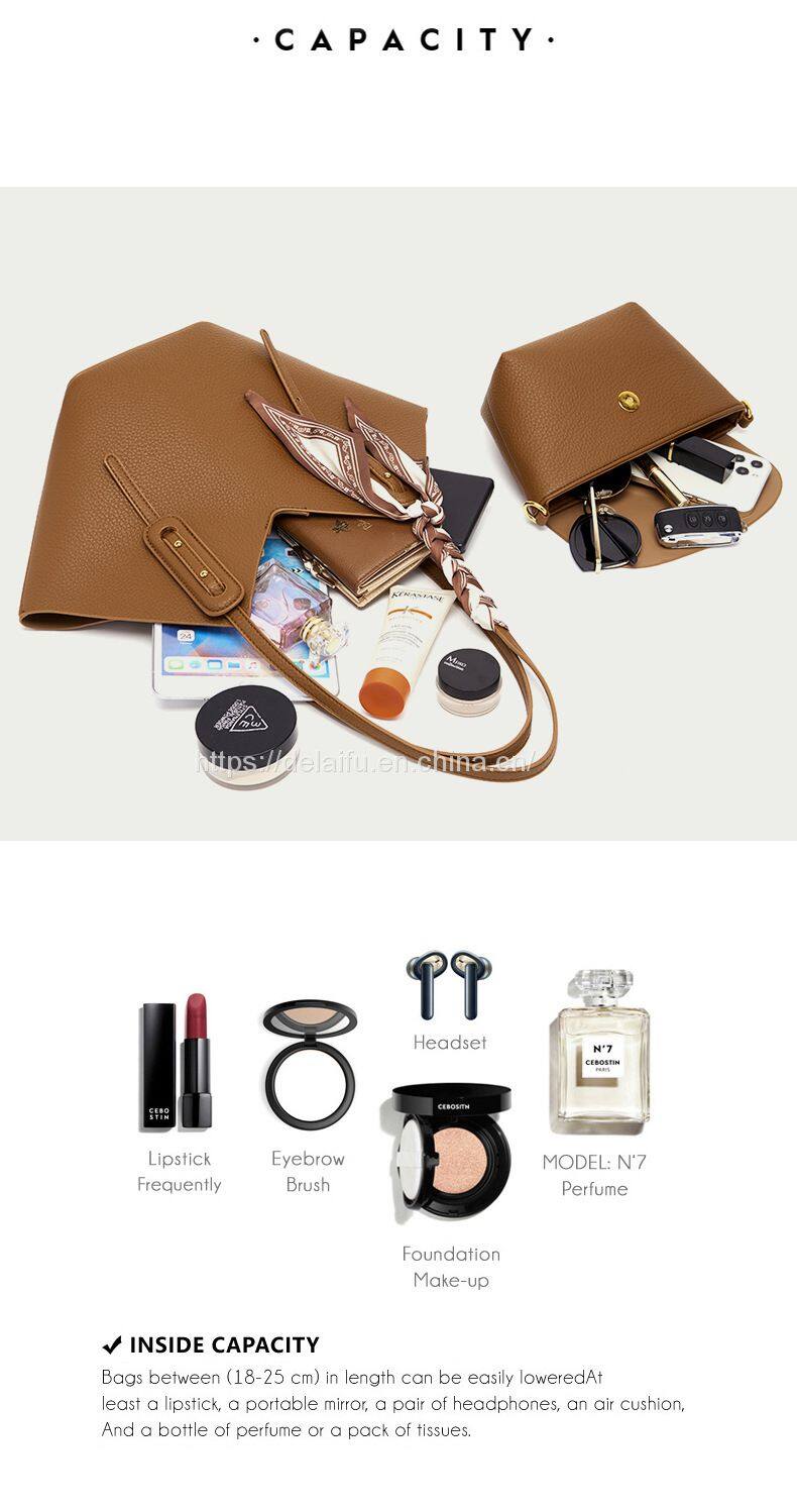 Female Lychee Pattern Senior Sense Large Capacity One-shoulder Tote Bag Two-piece Set