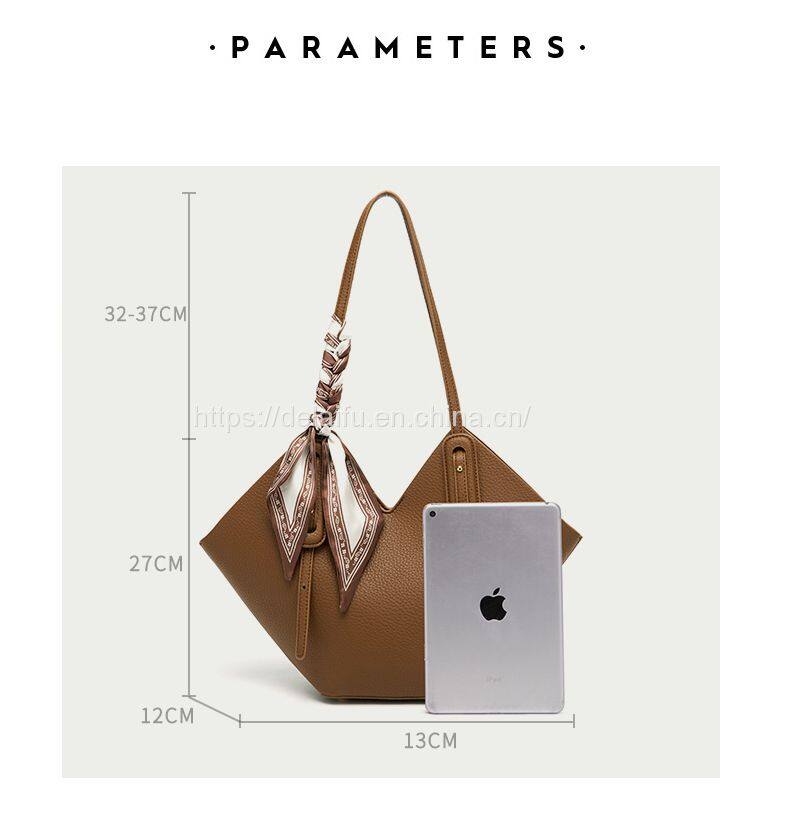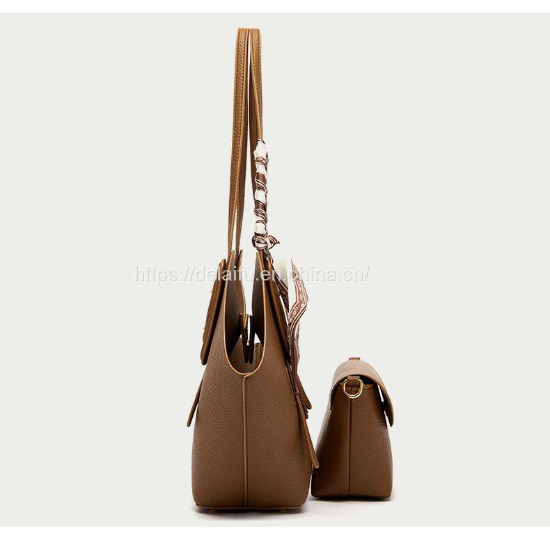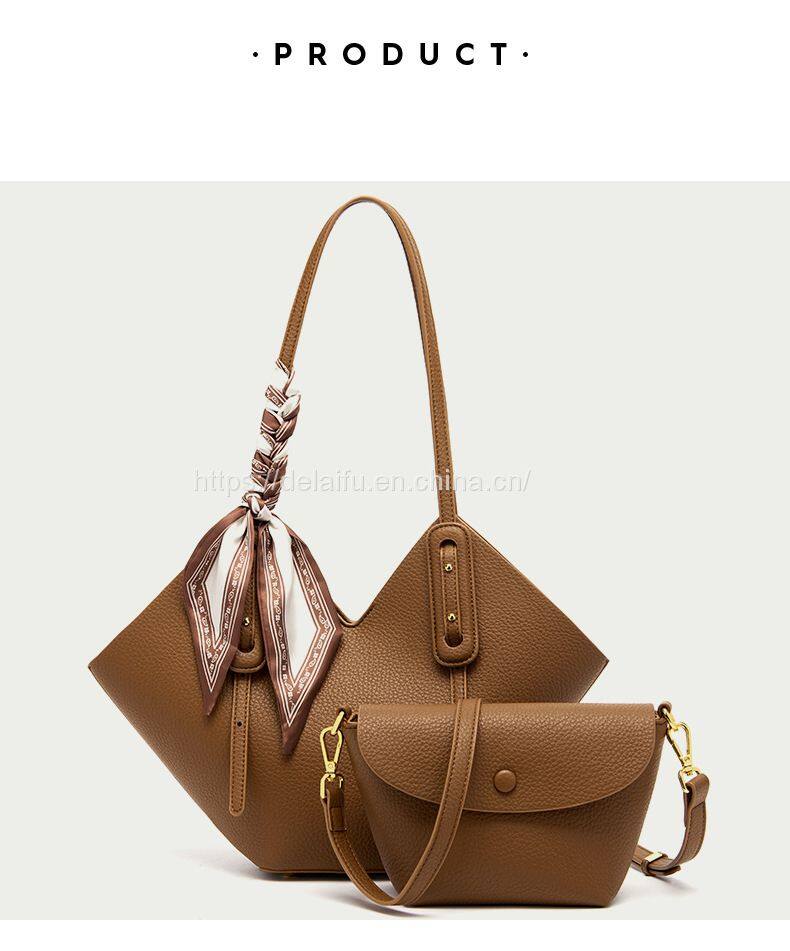 Female lychee pattern senior sense large capacity one-shoulder tote bag two-piece set