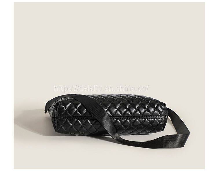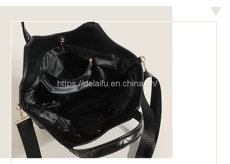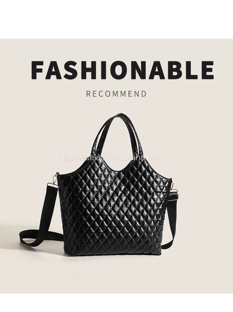 Home > Products > PU handbag > European and American Fashion Black Lingge Tote Bag Female Large Capacity Handbag Factory Wholesale