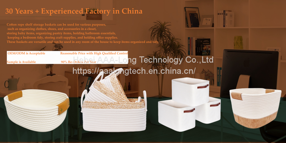 Hebei AAA-Long Technology Co.,Ltd is one of leading and professional manufacture/Factory/Supplier/Exporter of cotton rope baskets in China for more than 30 years. We specialize in producing high-quality, stylish, and functional cotton rope baskets for various purposes.