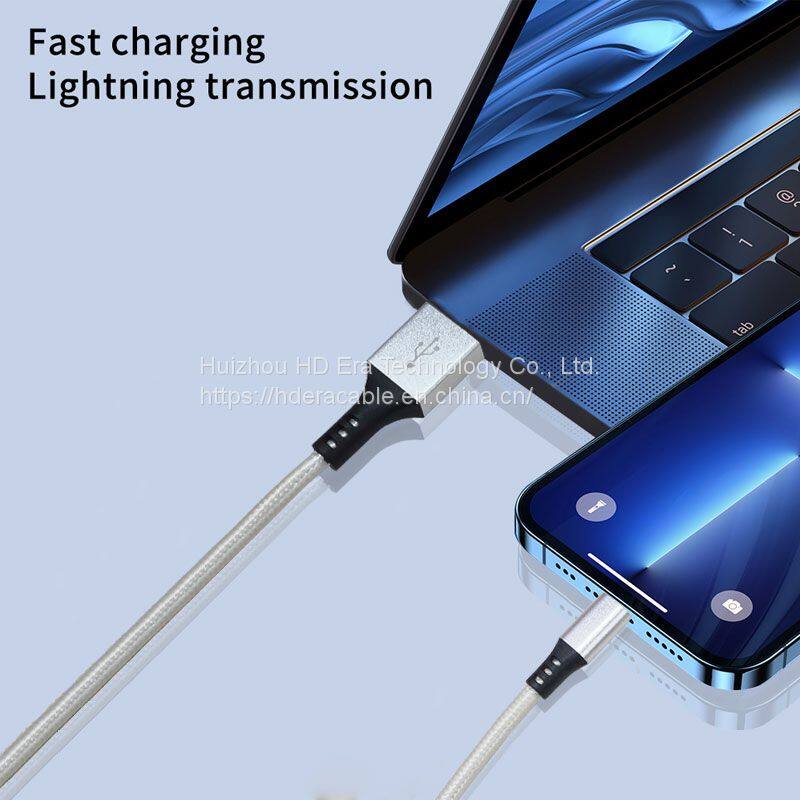 Home > Products > Type C Cable > Free Sample Wholesale Braided Iphone Cable 1m 3ft USB To Lightning Cable For Iphone Charger Cable HD9020