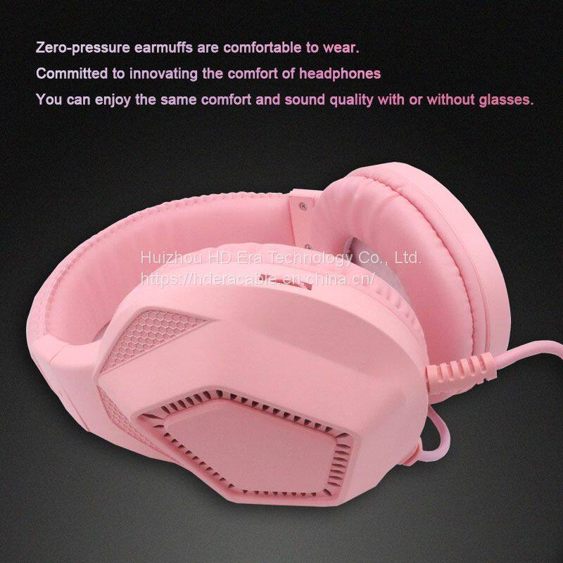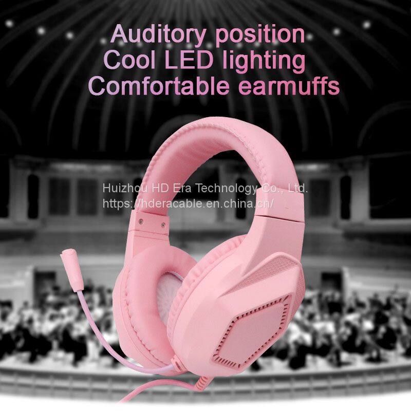 Factory Wholesale Usb Wired Audio Headphones 3.5mm Blue Led Light Microphone Gaming Headset HD811