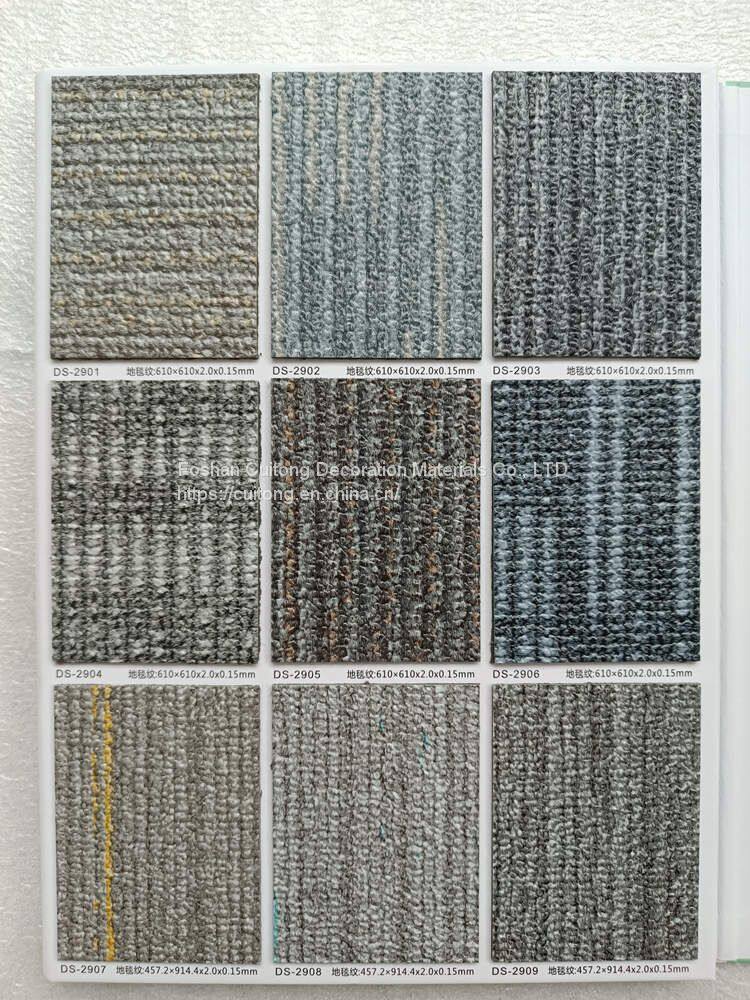 Guangdong wholesale waterproof wear-resistant plastic floor tile inn B&B hotel floor glue exhibition hall meeting room imitation carpet pattern PVC stone plastic floor