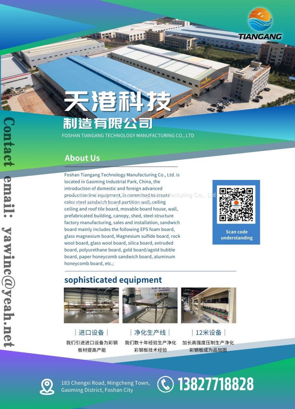 Silica Sandwich Board Hospital Clean Board Tiangang Polyurethane Sandwich Insulation Panel