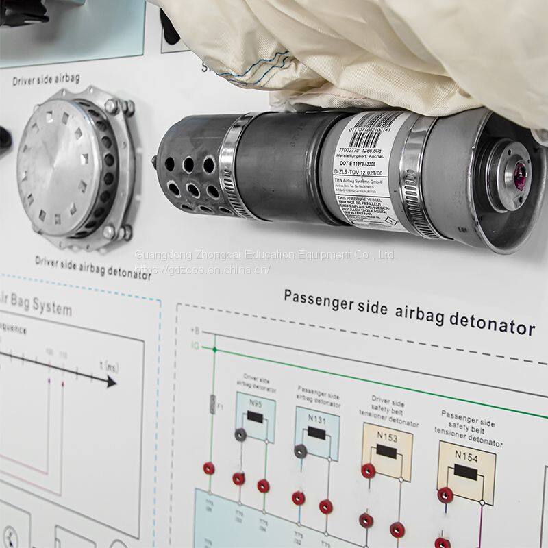 2)The teaching board of automobile airbag and seat belt tightener system is suitable for teaching needs of theory and maintenance practical training of automobile airbag and seat belt tightener system in school.