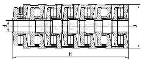 2. Multi-stage cylindrical roller thrust bearing (shaft type) is made by penetrating an axis through theinner bore of basic type multi-stage cylindrical roller thrust bearing and fastening the bearing to the axis by locking collar. The components of this type of cylindrical roller thrust bearing are inseparable.