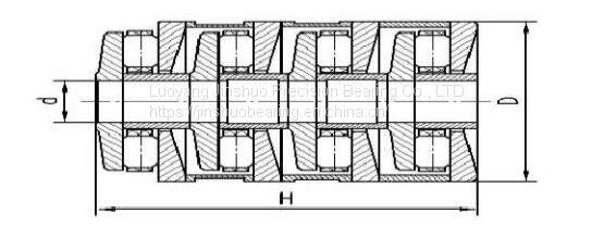 Basic type tandem bearing FIG. 2 is connected with the shaft ring, seat ring and roller cage assembly by elastic spacers. This type of bearing is separable structure, parts can be detachable, it must be carefully installed and disassembled in accordance with the numbering order provided by our company
