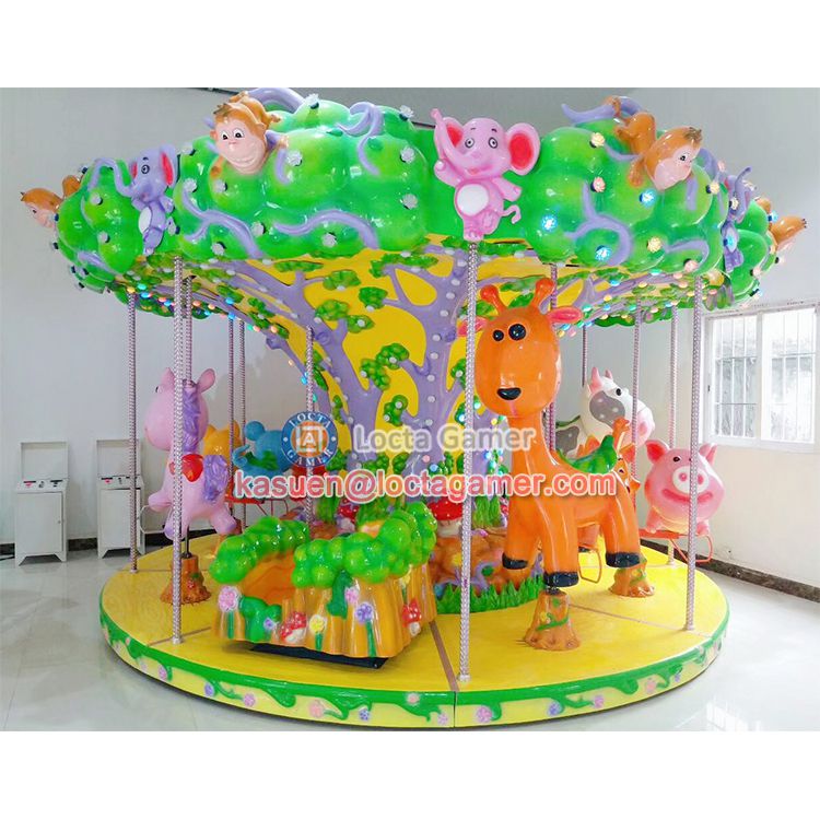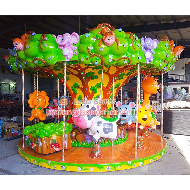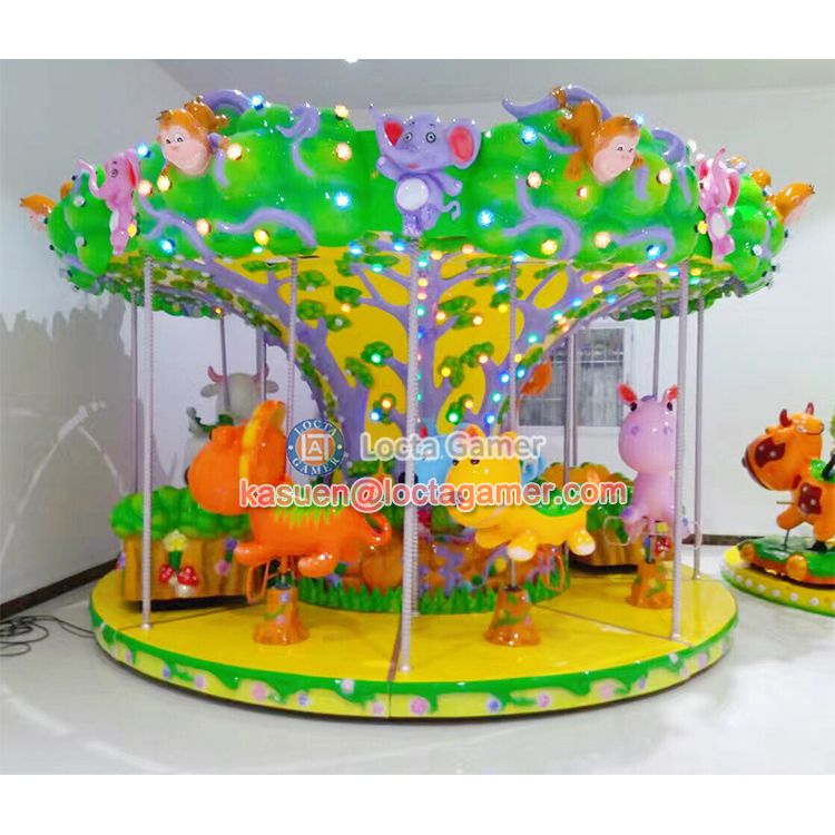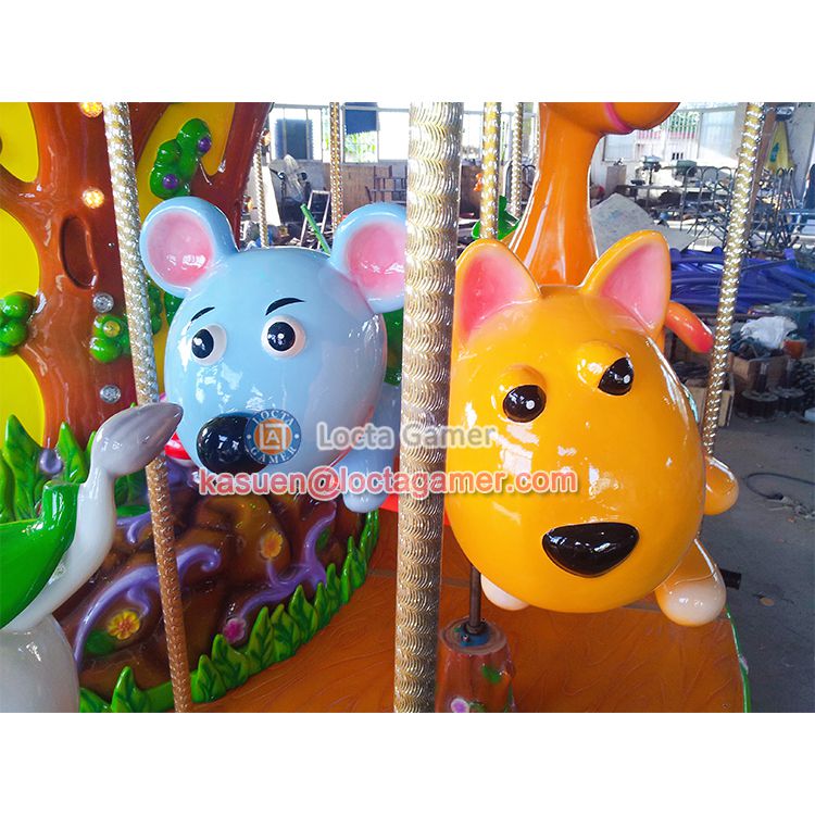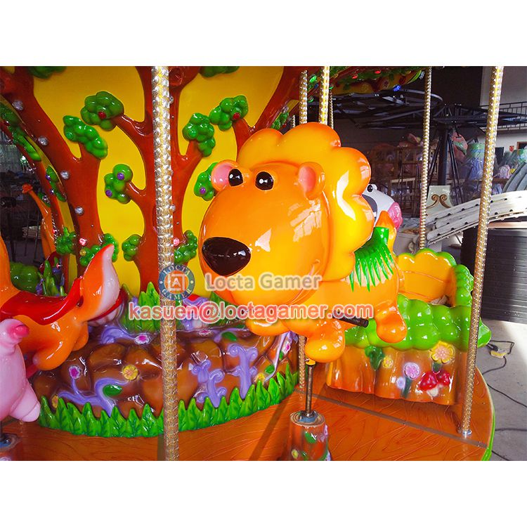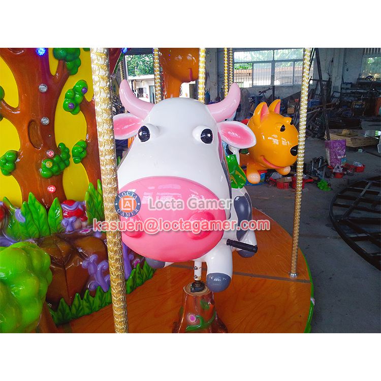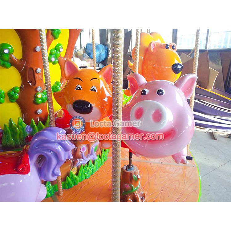 This is a 12-seat merry-go-round, colorful, colorful, very attractive to children's eyes, from 12 different animal images constructed 12 seats, there are giraffes, pigs, dogs, the cow, the lion, the little mouse, the Little Fox, the pony, the old stump, and so on, make the turning horse more full of vitality. At the same time, the use of transmission on the rotating horse, so that the horse running more safe, adults and children can rest assured that the rotation of fun. Can control the rotating time of 1-10 minutes, also can control the speed of rotation.
