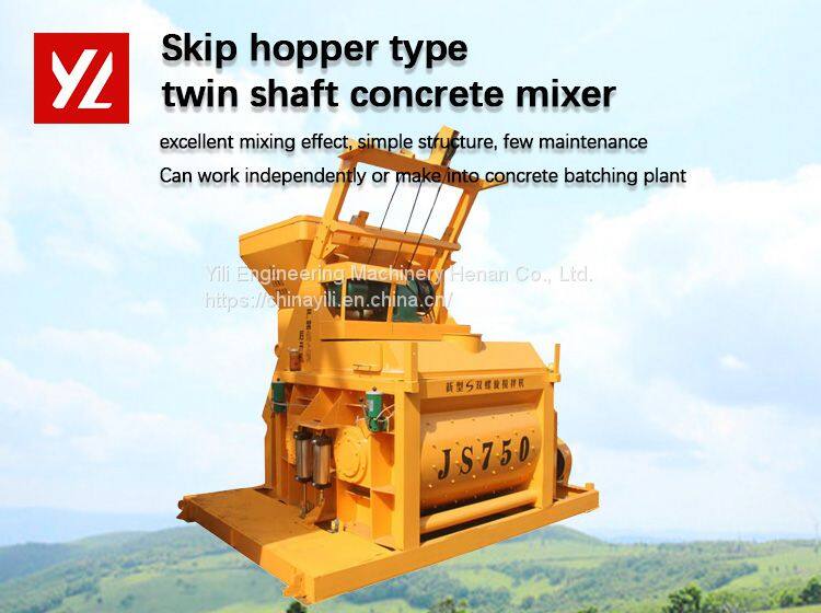 Yili JS series twin shaft concrete mixer is very hot to be used for concrete batching plant. It has a very good mixing effect of the finished concrete with its compulsory mixing feature. Twin shafts also provide a high efficiency mixing, which can save your time.