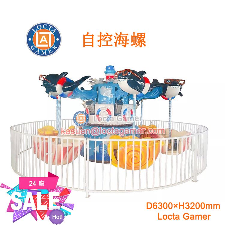 This self-control conch is composed of six large conch, each large conch has four small seats for adults and children to ride. Adults and children can according to their own preferences in the sea conch spiral process of control conch up and down, conch can be pressed to achieve a random rise and fall, give visitors a different experience. The * * * shape of the self-controlled conch aircraft, with the appearance of a cartoon, in the six small dolphins under the rotation of the flight to take off and take off.