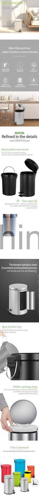 Soft Close Can Outside Garbage Sorting 5 Liter Foot Stepped Kitchen Round Bucket With Lid Metal Trash Bin