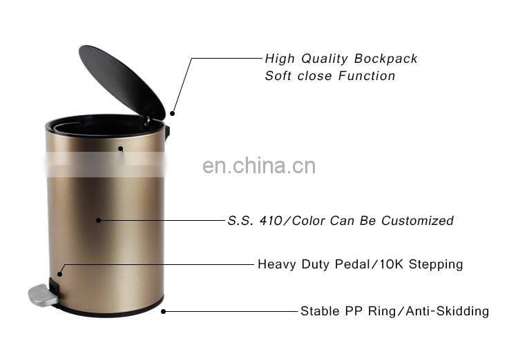 Modern Round Soft Closing Pedal Garbage Bin Waste Liner 5L Dustbin Heavt Duty Stainless Steel With Lid Trash Can