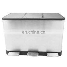 Stainless Steel Foot Pedal Dustbin Bin Metal Rectangular Iron 3 Compartment Waste Sorting Trash Can
