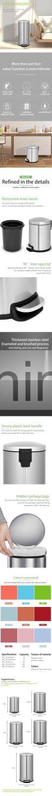 Home Modern Pedal Bin Durable Dustbin Customized Kitchen Indoor Trash Garbage Can