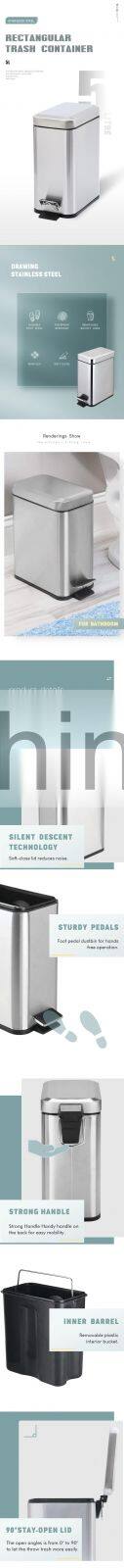 1.3 Gallon kitchen trash can. Made of high quality stainless steel trash can, anti-rust and beautiful appearance.