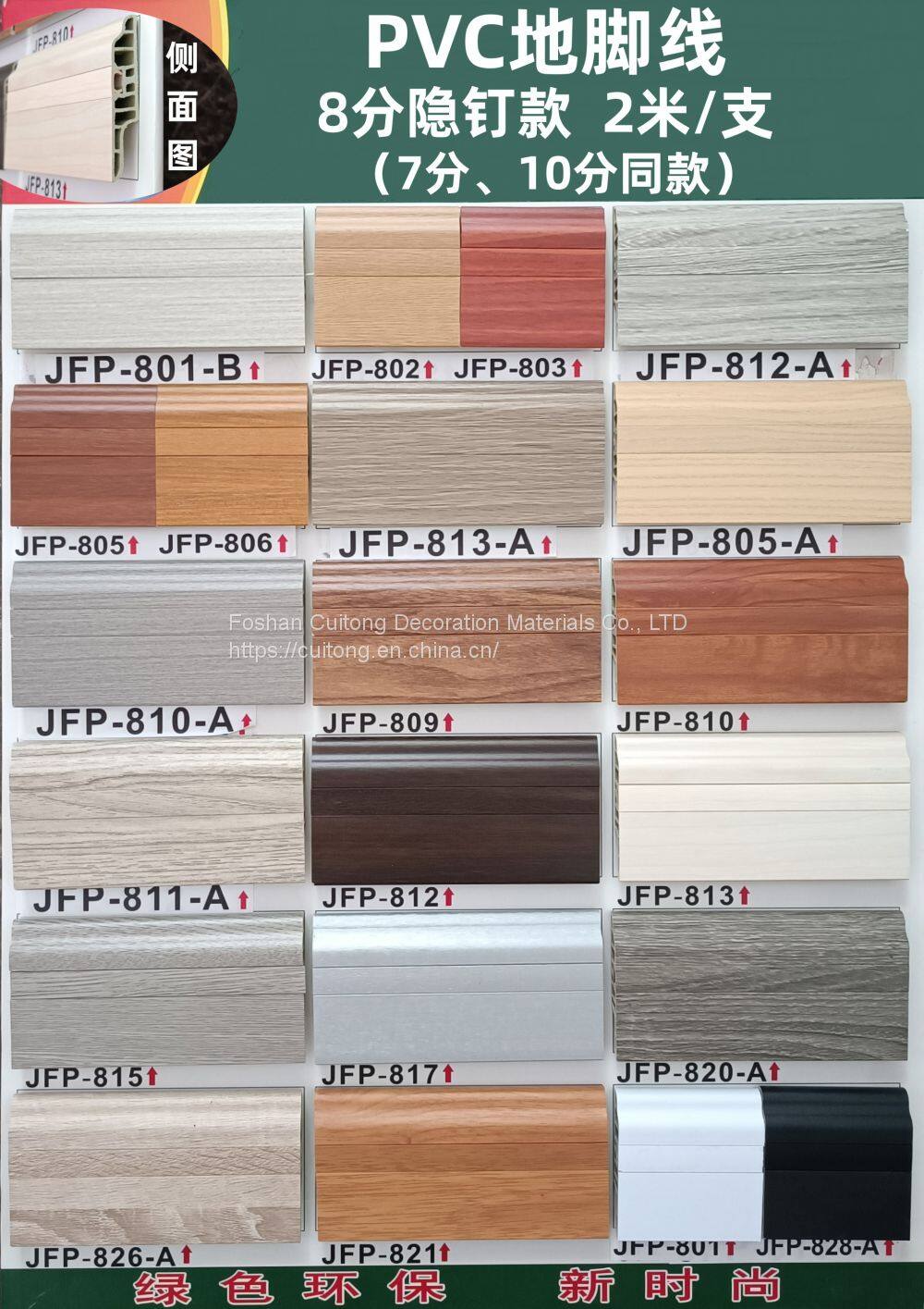 Hidden Nail Pvc Baseboard 8cm Wood Grain Floor Line Waterproof Floor Line Guangdong Wholesale Wall Corner Line Closing Line