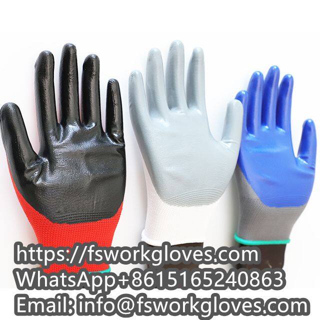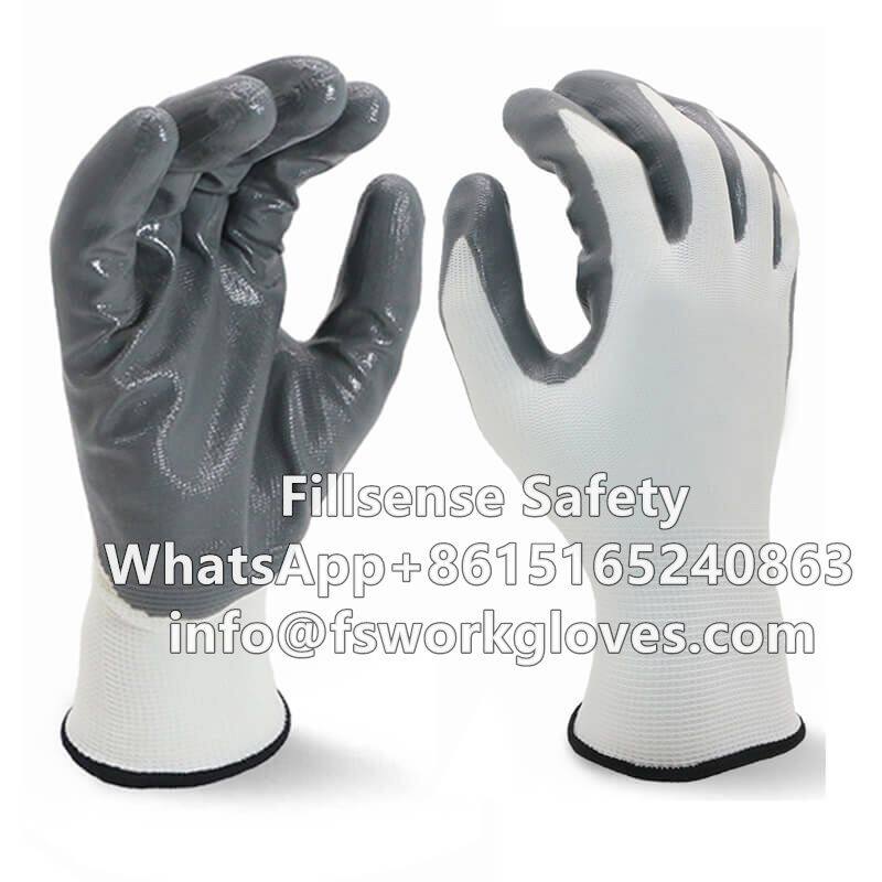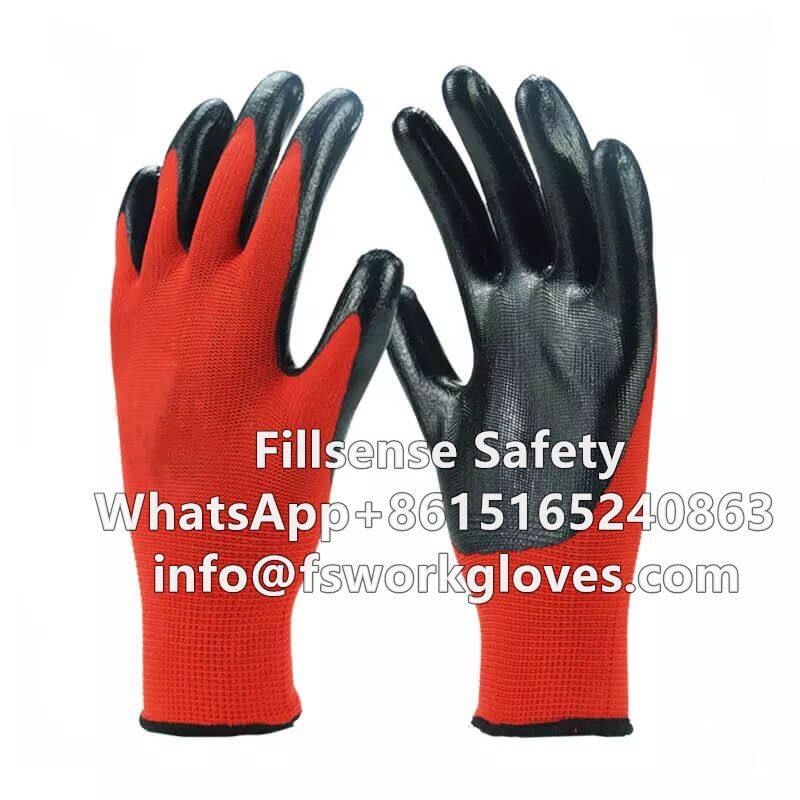 Best 13G Polyester Liner Nitrile Palm Coated NBR Safety Gloves