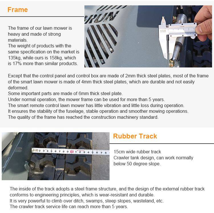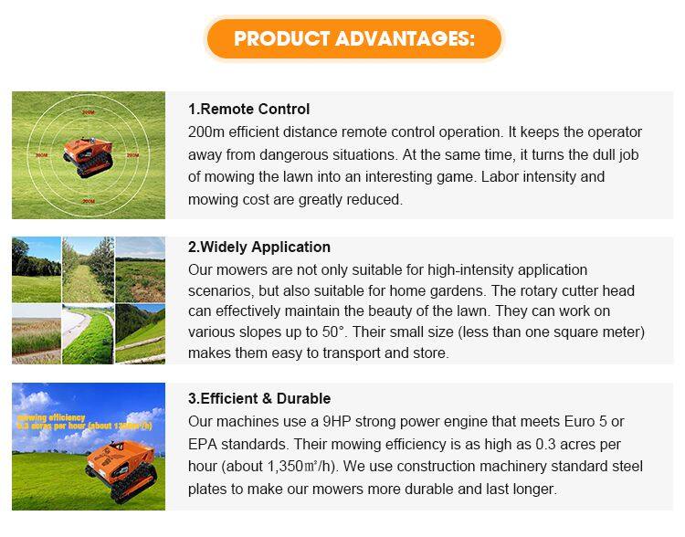 We are a manufacturer which focuses on the production of Remote Controlled Lawn Grass Cutteronly. Compared with many other companies which do not produce their own but sell consignments, we do have obvious advantages in product research and development. Our products perform exceptionally well due to state-of-the-art technology and high-tech configurations. Compared with similar products, our price advantage is significant. Based on the in-depth understanding of products, we provide the best quality and efficient after-sales services which can directly help customers solve product problems online and provide fast technical support.