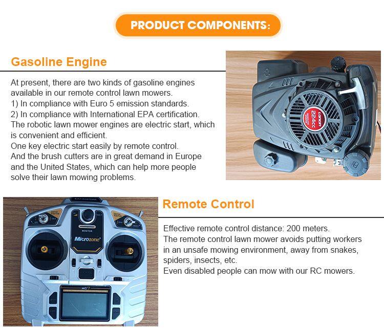 CE EPA Euro 5 Gasoline Engine Low Energy Consumption Strong Power RC Robot Mower Slope