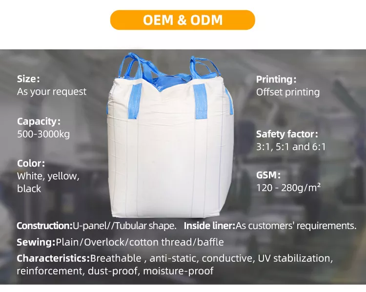 1ton Big Bag High Quality Jumbo Bag 1.5ton FIBC Super Sack PP Bulk Bag for Sand & Top With Standard Loops