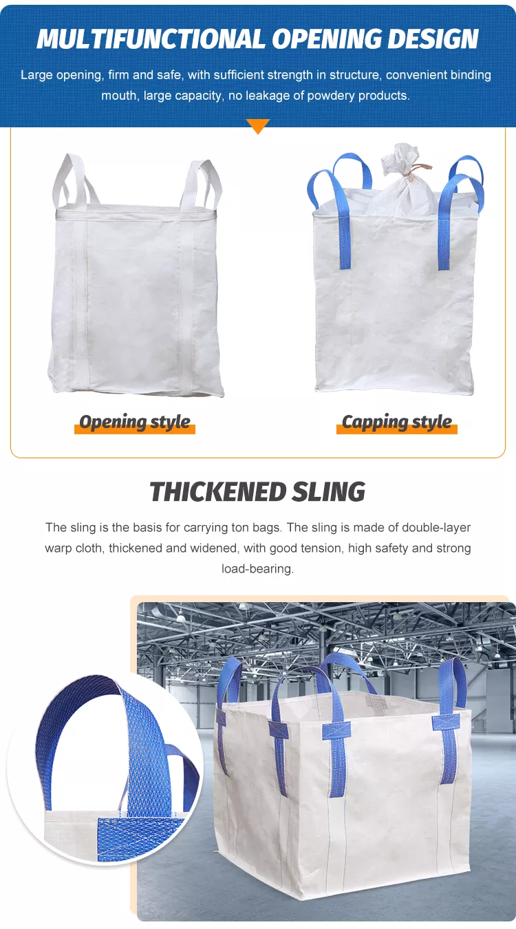 Logistics Packaging 1ton 2ton Polypropylene Material pp U-panel Type Baffle 4-panel Side Seam Loop Big Bag Bulk Bag