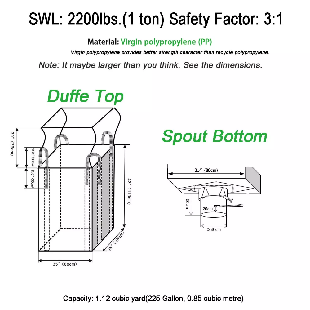 FIBC bulk bag, short for Flexible Intermediate Bulk Containers, are made of Polypropylene woven fabric with lifting loops that allow the bulk container to be filled from top and discharged from the bottom. They are easy to handle with efficiency and also less cost.