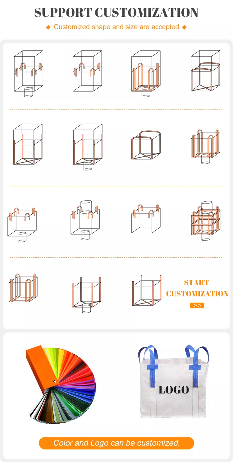 Logistics Packaging 1ton 2ton Polypropylene Material pp U-panel Type Baffle 4-panel Side Seam Loop Big Bag Bulk Bag
