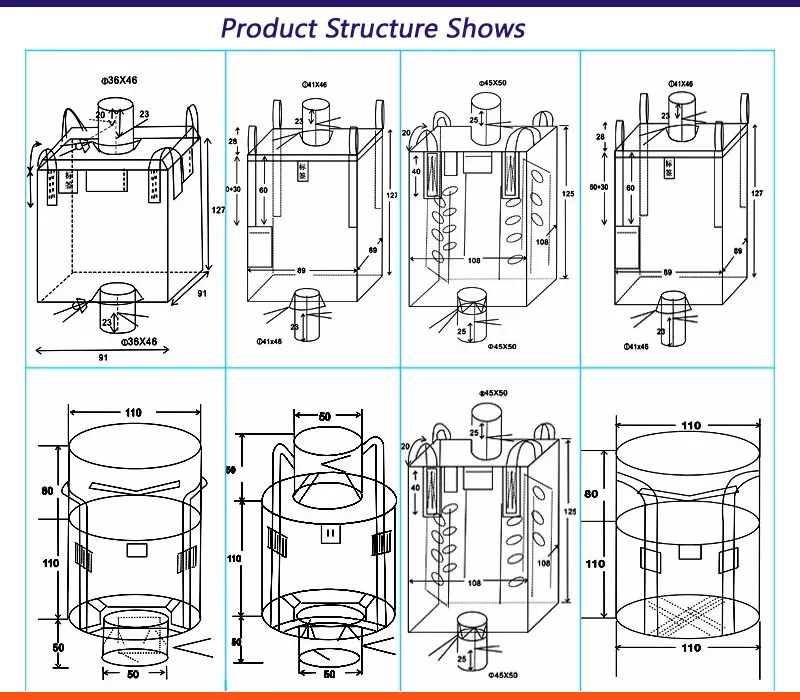 1 Ton Bulk Bags a Metric Bag FIBC Type Anti-UV Woven Sacks With Duffle Top and Spout Bottom 1 Ton 1.5 Ton 2 Ton PP Woven Bag