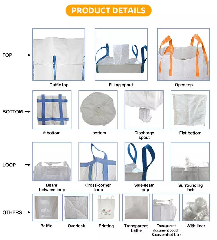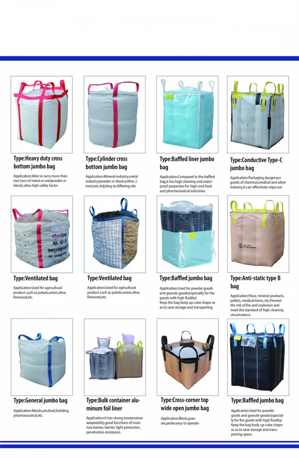 1ton Jumbo Bag PP Fabric Bulk Bag 1.5ton Super Sacks FIBC 2ton Big Bag for Cement Packing