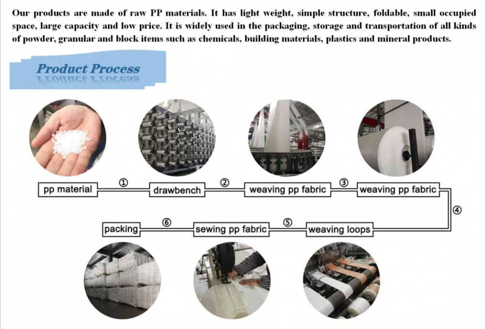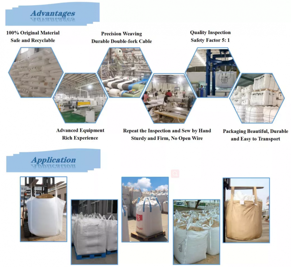 Bulk big bag with seamless made from pp woven fabric on a circular loom and cut to a suitable bag height. This eliminates the need for vertical seems. The tubular shape design is ideal option for fine or powder materials. Bottom of bag can be square or circle shape available.