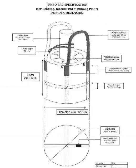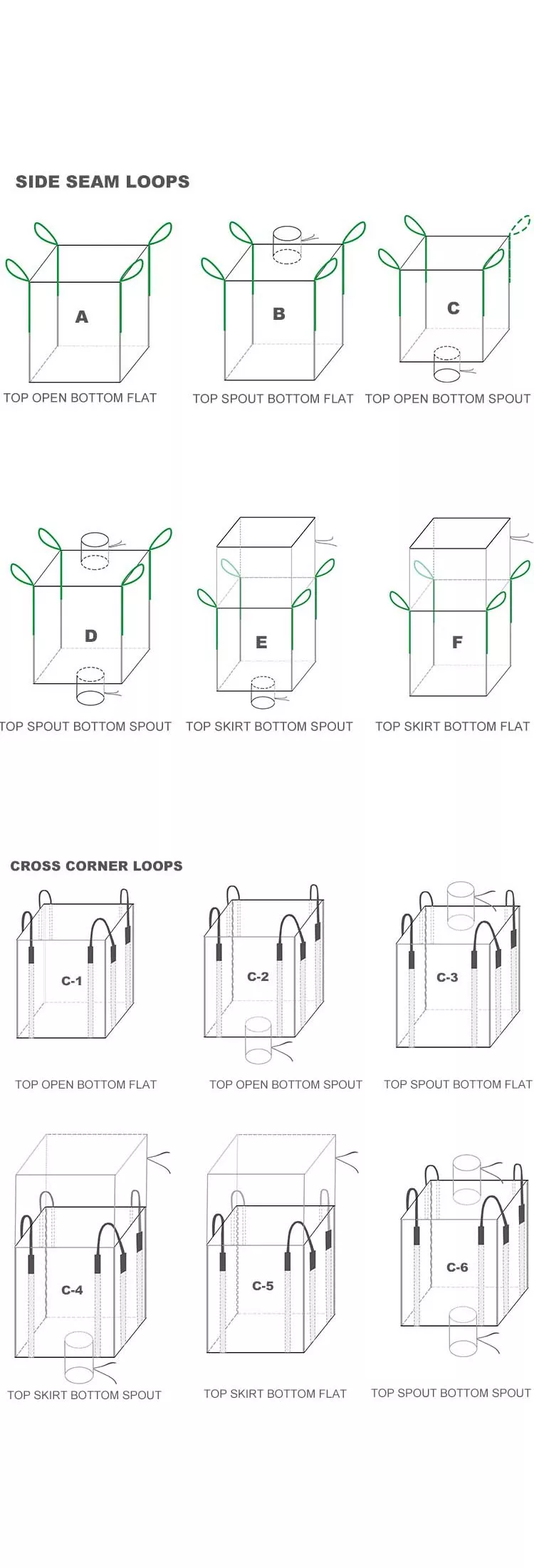 Our bags can be manufactured to fulfill your specific requirements. The height, diameter, and length of the bulk bag and spouts, fabric with coated or uncoated, and whether a polyethylene liner is needed will be specified according to the type of products which will be shipped.
