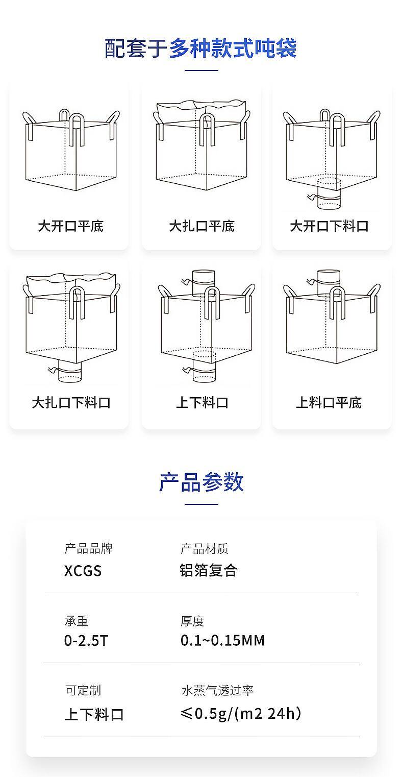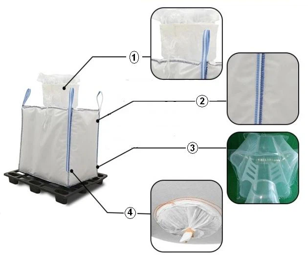 1500kgs Jumbo Bag PP Fabric Big Bag 1.5ton Super Sacks FIBC Baffle Bulk Bag for Chemical Powders