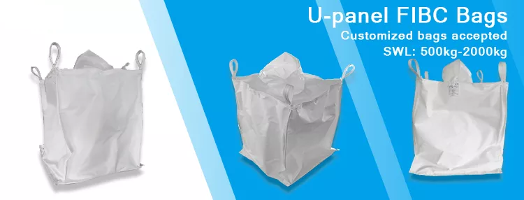 U-Panel big bags consists of a large “U” piece of fabric with 2 side panels sewing to each side to fulfill a bag shape. U-panel bulk bags can offer high safe working loading weight and solid durability.