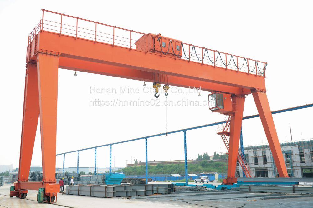 The European design gantry crane is a bridge type crane that is supported on the ground track by two legs on both sides of the bridge. Structurally, it consists of a gantry, a crane operating mechanism, a lifting trolley, and electrical components. Some gantry cranes only have legs on one side, while the other side supports the operation on the factory building or trestle, called semi gantry cranes.