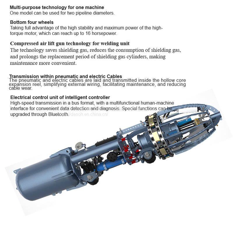 DENOH oil and gas pipeline Mountain flexible internal welding machine DW48/56-8H internal welding equipment, suitable for pipeline diameters of 1219-1422mm (48-56 inches)Electro hydraulic drive