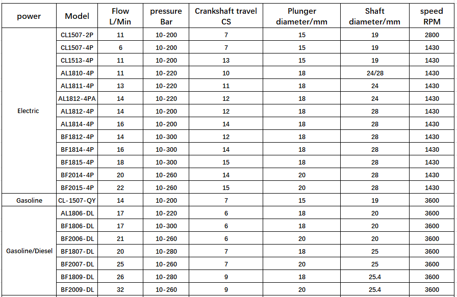 High Pressure Washre Pump Gasoline Diesel 10-280bar Pressure Pump for Cleaning